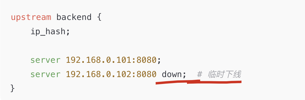 我们后面所有例子都只改 upstream backend { ... } 这一块。