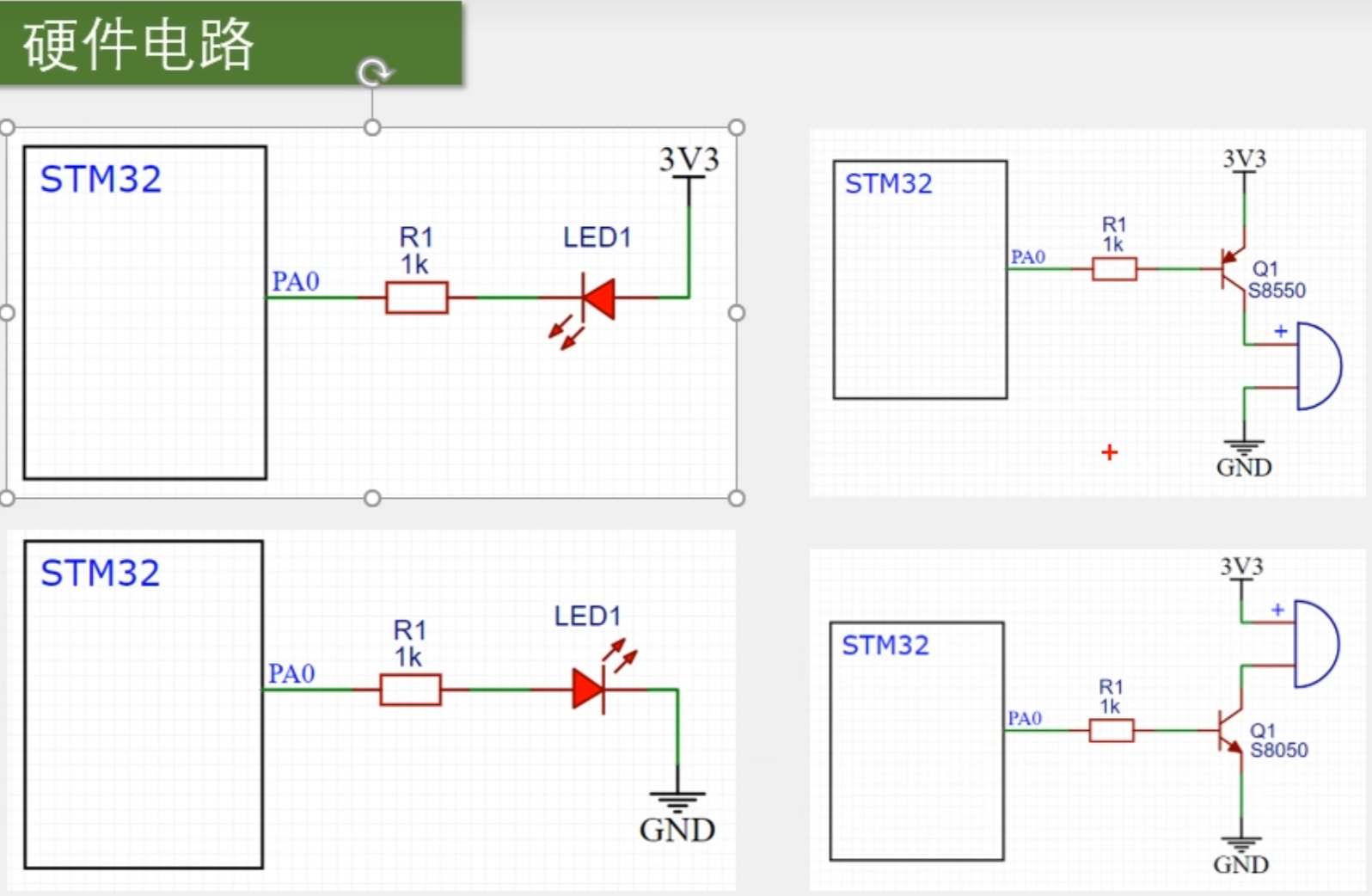 当右上此时基极给到负电压,则那条线路就直接导通了,蜂鸣器就响,但是给了正电压,则直接截止