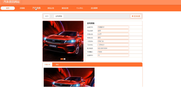 管理员可以查看汽车信息,可以对汽车信息进行收藏和评论操作。界面如下图所示: