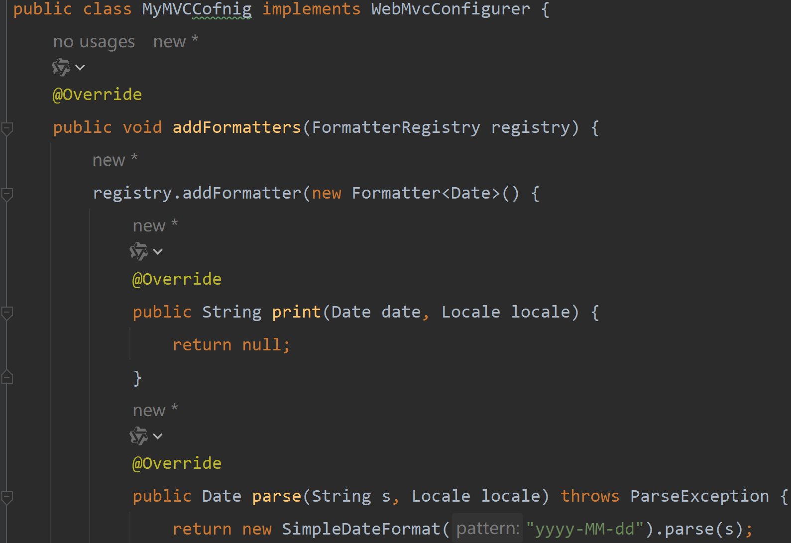实现格式化功能可以通过实现WebMvcConfigurer接口 和在配置文件中编写配置 这两种方式来实现。