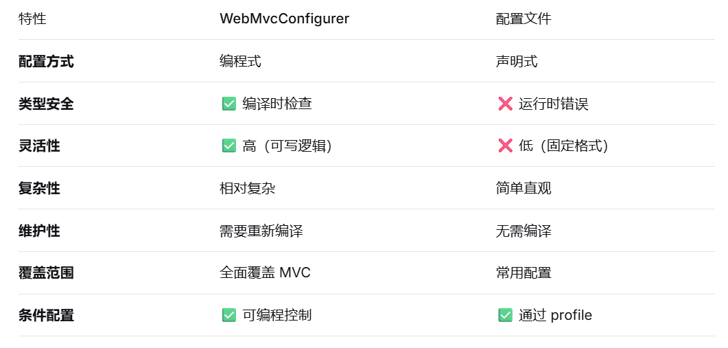 实现WebMvcConfigurer接口 和在配置文件中编写配置 这两种有什么区别呢?