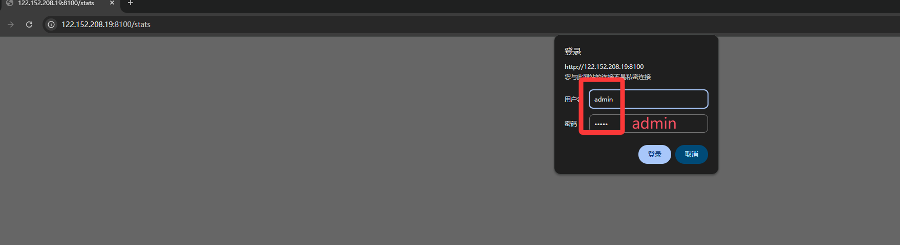 http://122.152.208.19:8100/stats:HAProxy 负载均衡信息地址,账号密码:admin/admin。