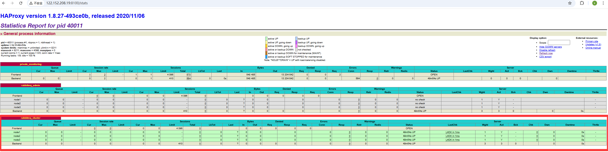 7.1、通过访问http://122.152.208.19:8100/stats,查看 HAProxy 负载均衡信息: