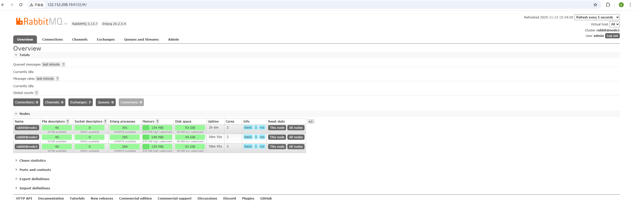 - 🔗 节点间同步通信:RabbitMQ 集群的各个节点(例如 node1、node2、node3)需要相互通信以共享元数据(如队列、交换机、绑定信息等),这个通信就是通过 25672 端口进行的。