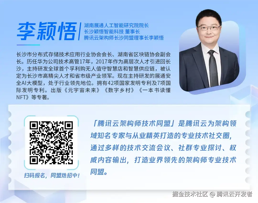 2025年9月,腾讯云架构师技术同盟与湖南展通人工智能研究院院长、颖悟智能科技董事长、腾讯云架构师长沙同盟理事长李颖悟进行了一次深度对话,以下是采访文字实录。为了您的阅读体验,我们做了不变原意的编辑。