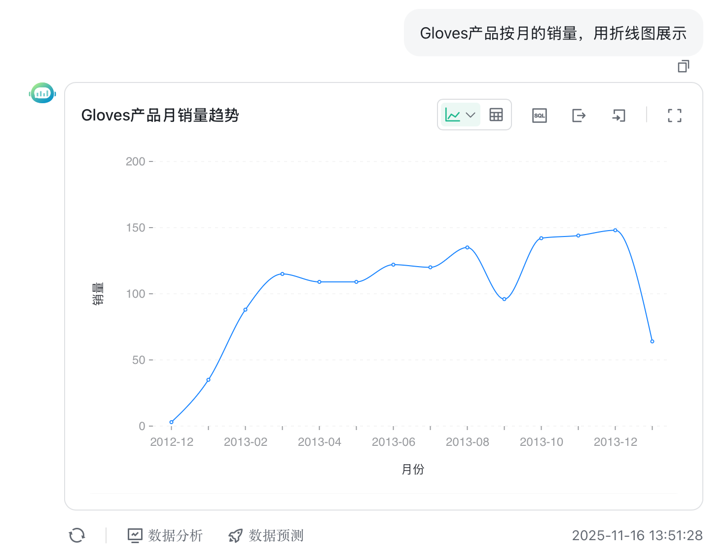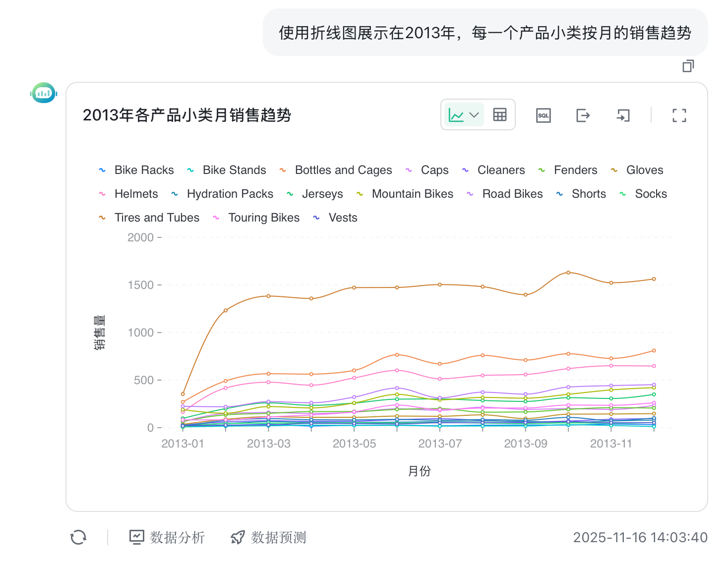 点击数据分析,可以生成基于大模型的分析。以下是其针对这段数据生成的分析报告。