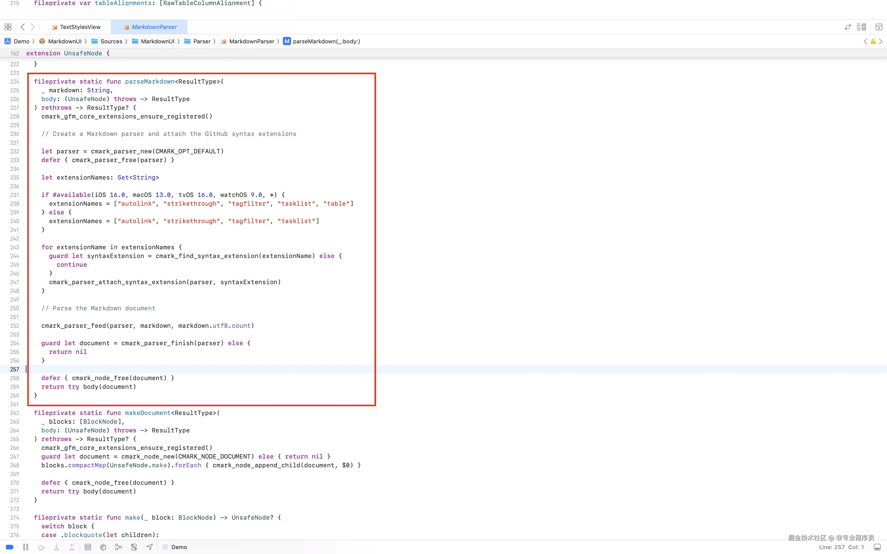 如下,是使用 cmark-gfm 解析的核心逻辑: