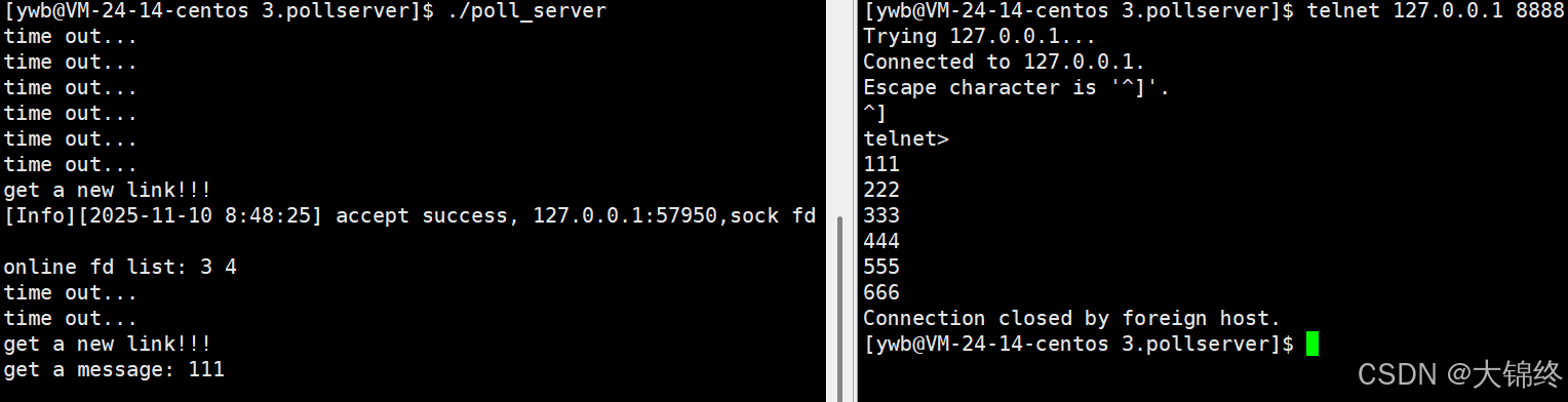 特定的时间值:如果在指定的时间段里没有事件发生,select将超时返回。注意超时时间需要循环设定,否则到时之后会置0相当于改变了设定的时间变成立即返回 - fd_set结构:
