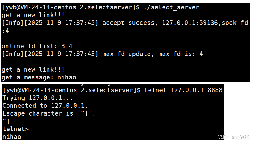 2.程序会停在select这里等待,直到被监视的文件描述符有一个或多个发生了状态改变