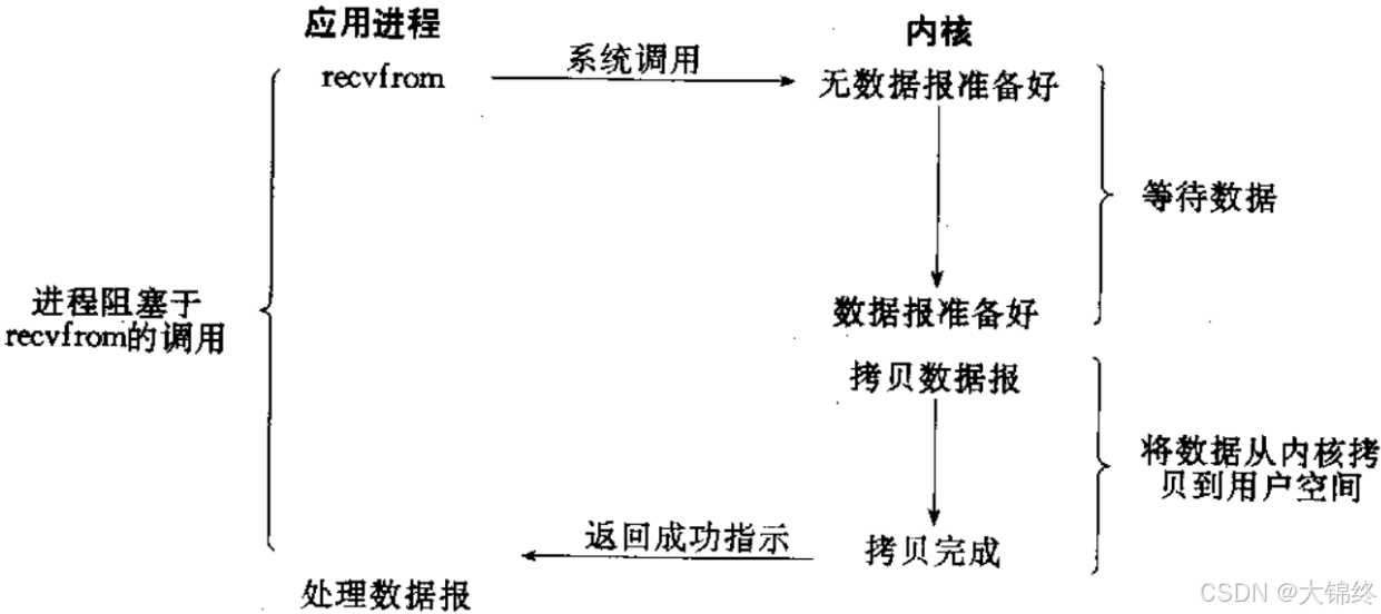 任何IO过程中, 都包含两个步骤. 第一是等待, 第二是拷贝