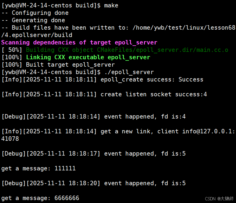 add_executable(epoll_server main.cc)#指定可执行文件的名称和源代码,让CMake自动生成编译规则