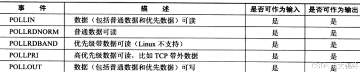 NULL:则表示select()没有timeout,select将一直被阻塞,直到某个文件描述符上发生了事件;