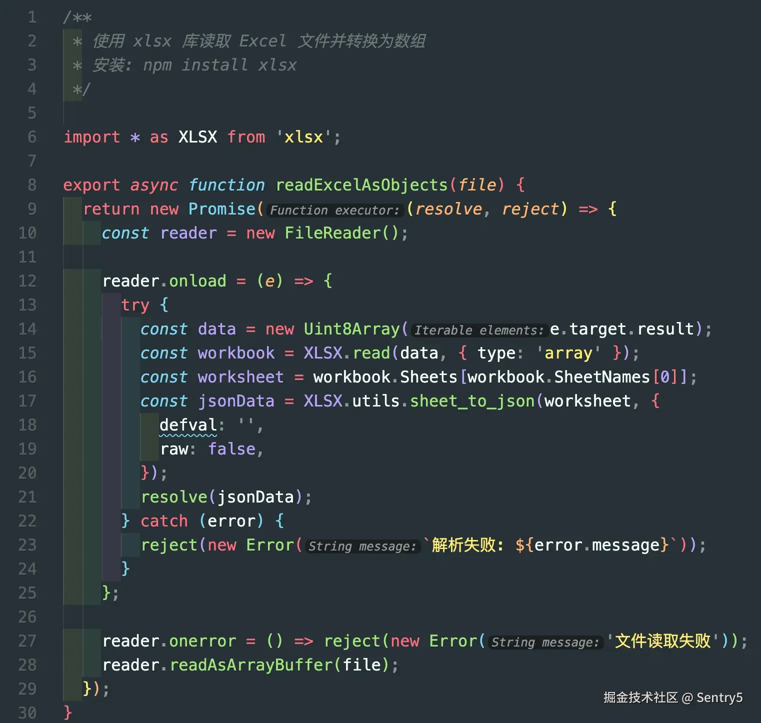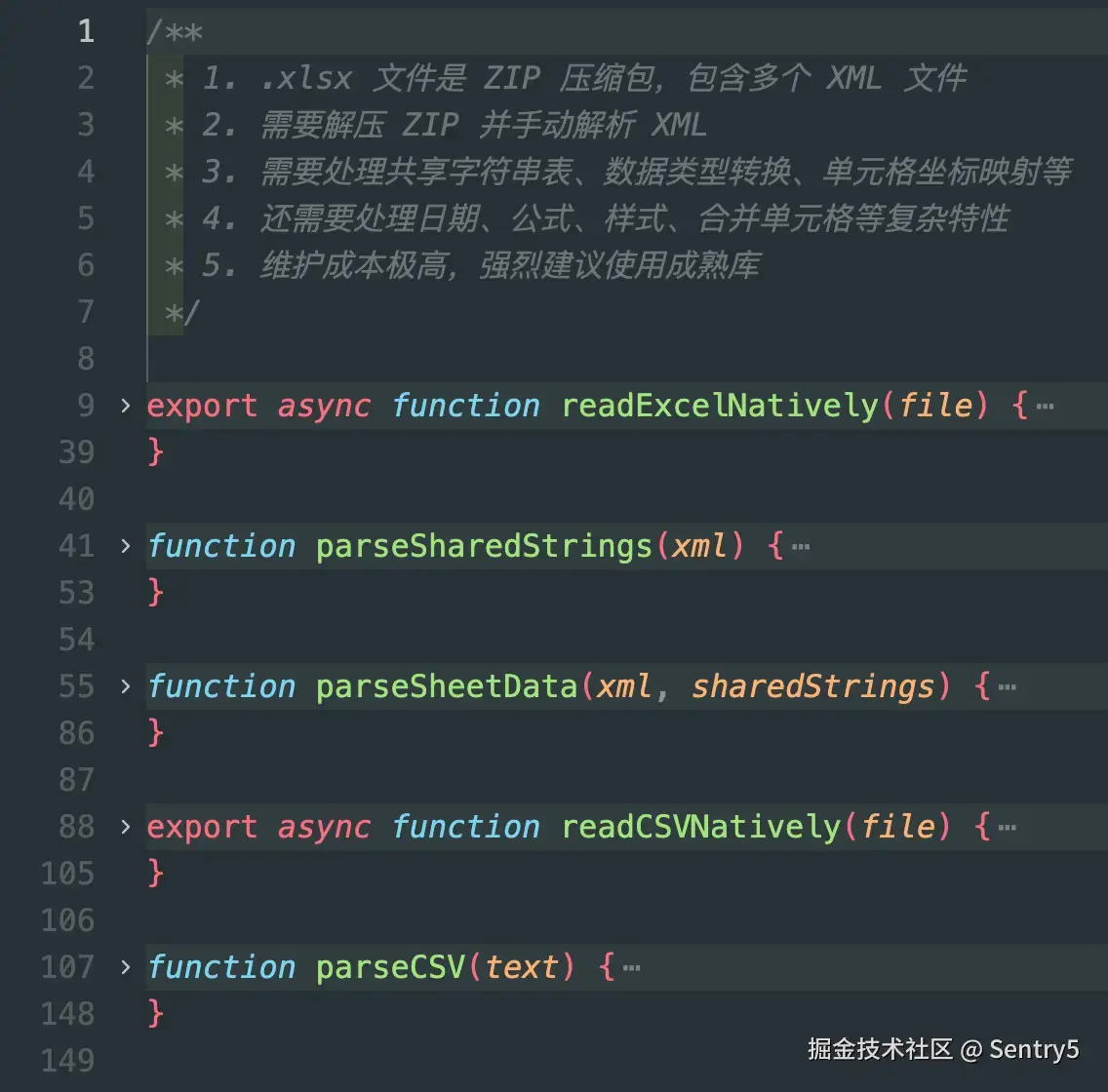 以前端开发为例,若能明确指定使用某个具体的 JavaScript 库,AI 的响应质量将显著提升。例如,在实现"前端解析 Excel 文件"功能时,若直接提示 Cursor 使用 xlsx 库,仅需二三十行代码即可获得目标数据结构: