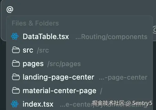 在输入框中输入 @,手动选择要引用的文件或目录。