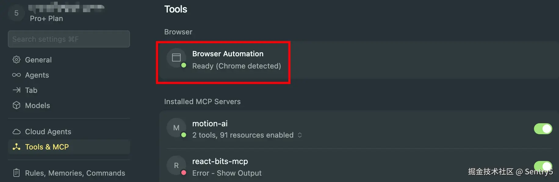 而此时,正是 MCP(Model Context Protocol)可大显身手的场景。 通过为 Cursor 配置浏览器 MCP 服务,我实现了工作流的质的飞跃:
