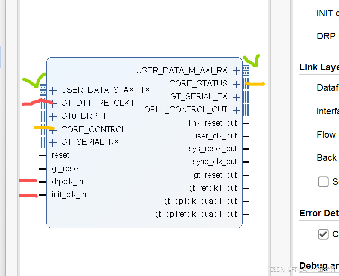 *_support)可以驱动多个 Aurora IP 核,共享同一个 QPLL 和时钟网络,极大节省资源。 -