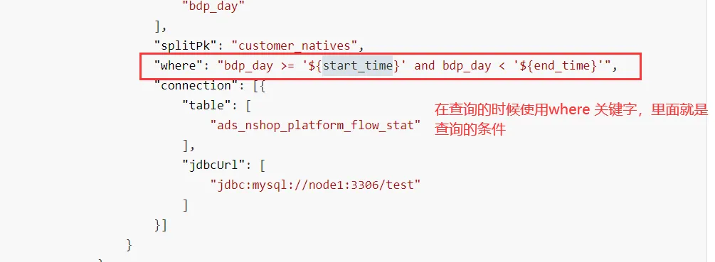 { "job": { "content": [{ "reader": { "name": "mysqlreader", "parameter": { "connection": [{ "querySql": "SELECT * FROM table WHERE update_time > '${last_max_time}'" }] } }, "writer": {...} }] } } -