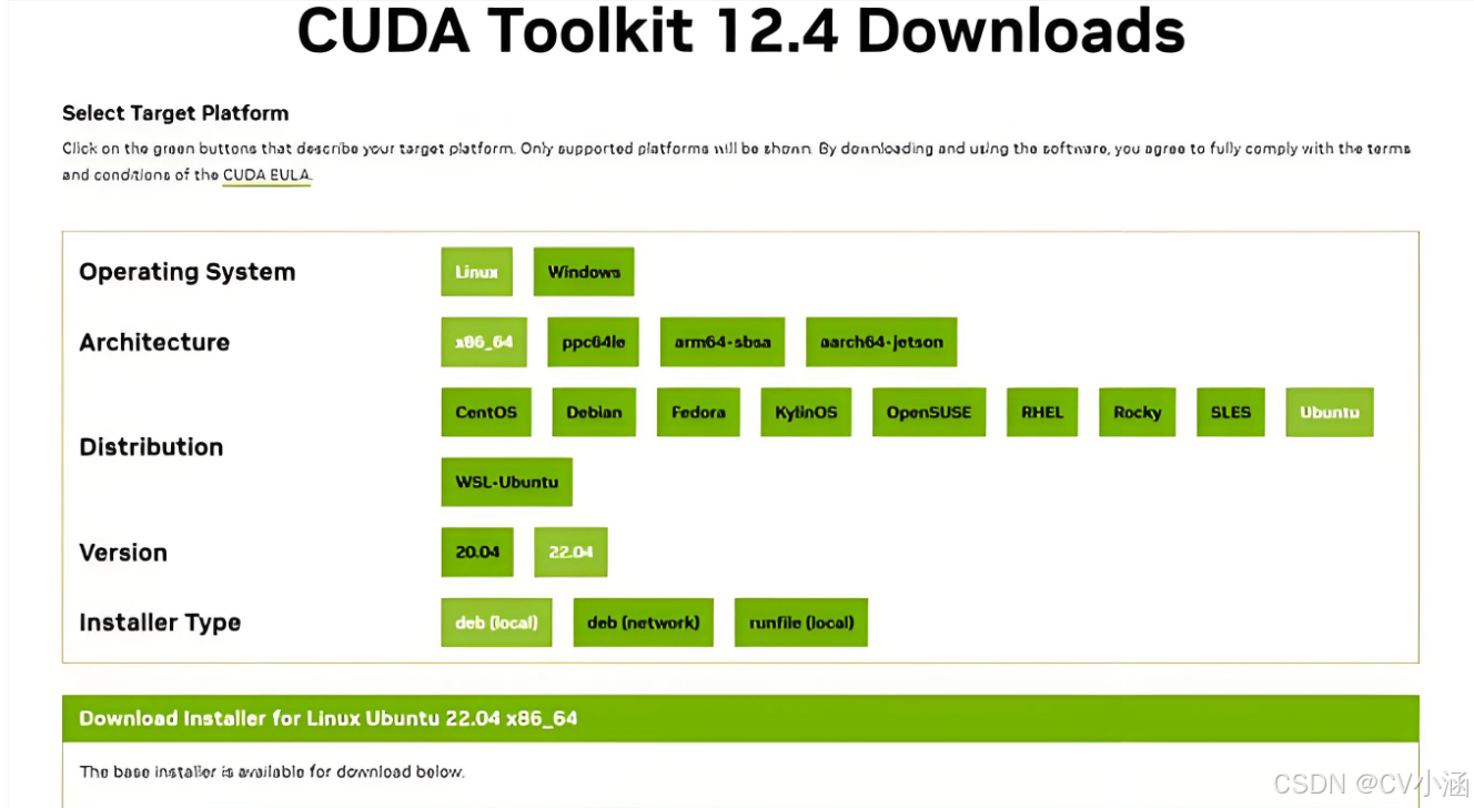 以Ubuntu 22.04安装CUDA 12.4为例,步骤如下: