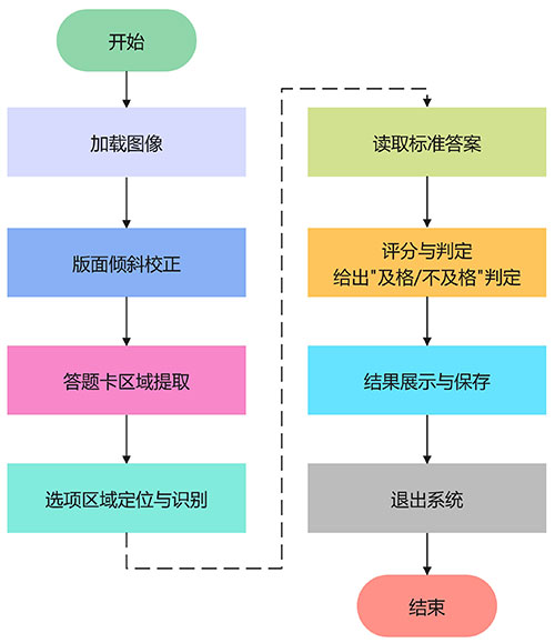摘要:针对传统答题卡人工阅卷效率低、准确性不足等问题,本文设计并实现了一套基于图像处理技术的智能答题卡识别与评分系统。系统采用 Python 与 OpenCV 对答题卡图像进行灰度化处理、Canny 边缘检测及霍夫变换倾斜校正,并结合轮廓提取与透视变换自动获取答题区域,在此基础上利用气泡重心坐标实现选项定位与识别。系统支持从外部文件读取标准答案,对识别结果进行自动评分和及格判定,界面层面基于 PyQt5 实现图像导入、处理过程可视化、结果展示与保存等功能。