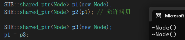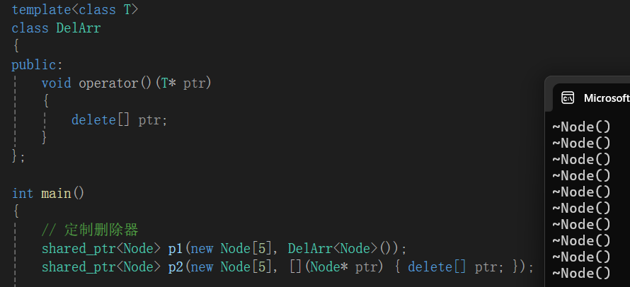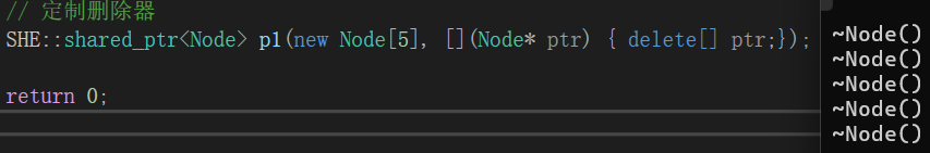 SHE::shared_ptr<Node> p1(new Node[5], [](Node* ptr) { delete[] ptr;});