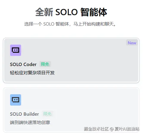 本次SOLO正式版发布,新增了一个内置智能体,那就是SOLO Coder。