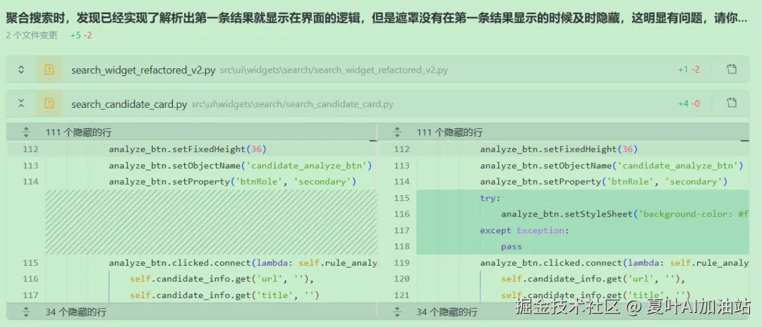 对于AI生成的代码,我们很多时候是需要复核和评审的,在此之前,trae修改的代码变更查看起来其实是很麻烦的,并且一点都不直观。