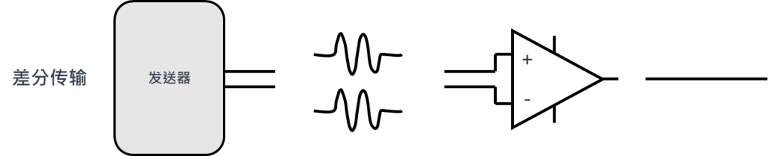 从两信号线差值可知引入的噪声并不会影响接收端判断传输的数据。