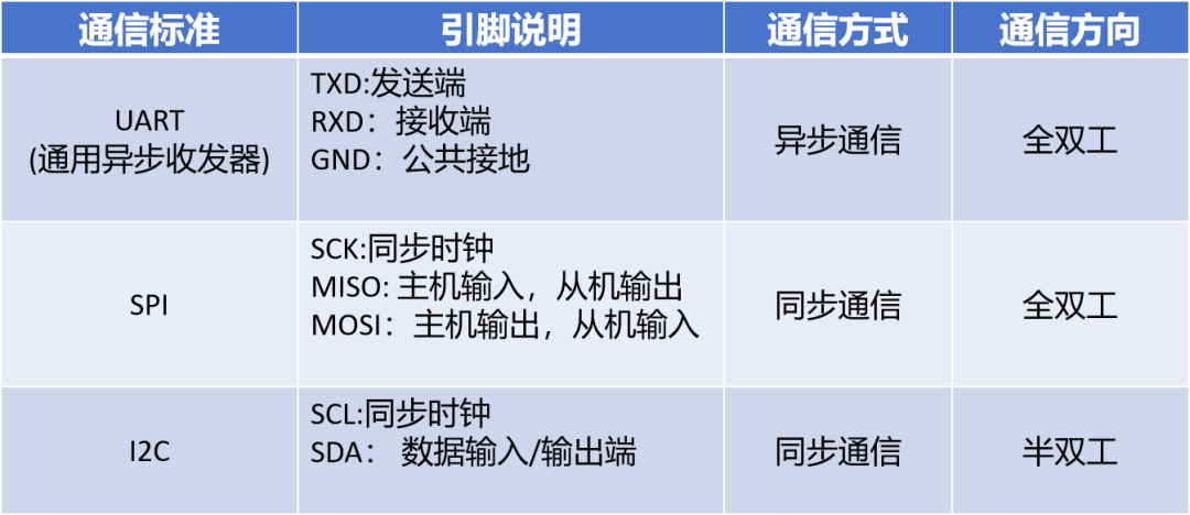 全双工通信:数据可以同时双向传输(如UART、SPI)。