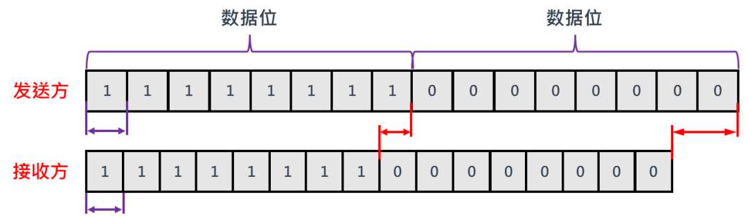 UART发送方和接收方使用各自的时钟,在这种情况下容易产生累计误差。比如发送方首先发送1-bit数据,它计时了1s后开始发送第二个1-bit数据,可是接收方在接收第一个1-bit数据时,它只计时了0.9s,发送方在发送完一个8-bit数据后,会产生误差;如果第二次发送数据时又紧接着发,那误差累计就会导致误差越来越大。