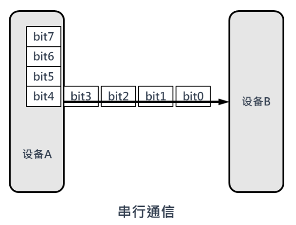 串行通信:数据分成一位一位的形式在一条数据线上逐个传输(通信线路简单,占用资源少,但速度慢)。