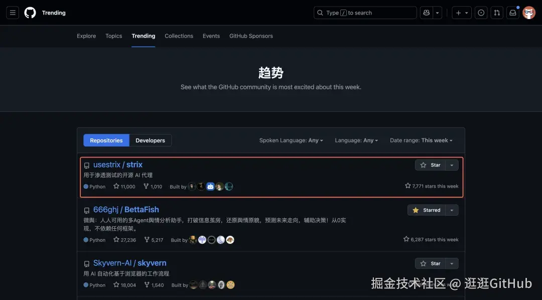 今天逛 GitHub 的时候,发现了一个名为 Strix 的开源项目登上了开源热榜。