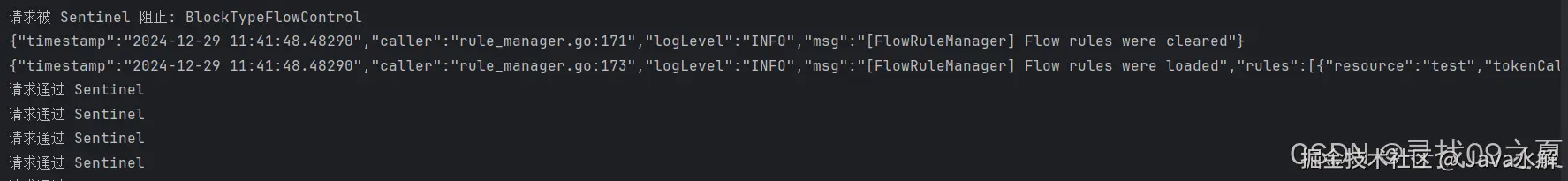 修改 rules.json 文件中的规则(比如修改 threshold:100)。Sentinel 自动检测到了文件的变化,并相应地更新了内部规则。此时,所有请求都通过了。