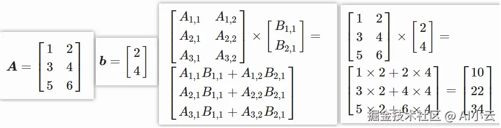 # A中的每一行与B中的第一列相乘,得到结果C中的第一列,A中的每一行与B中的第二列相乘,得到结果C中的第二列