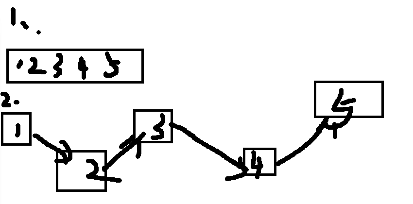 2.链表,每一份节点不仅携带数值还要有能力找到下一个数值