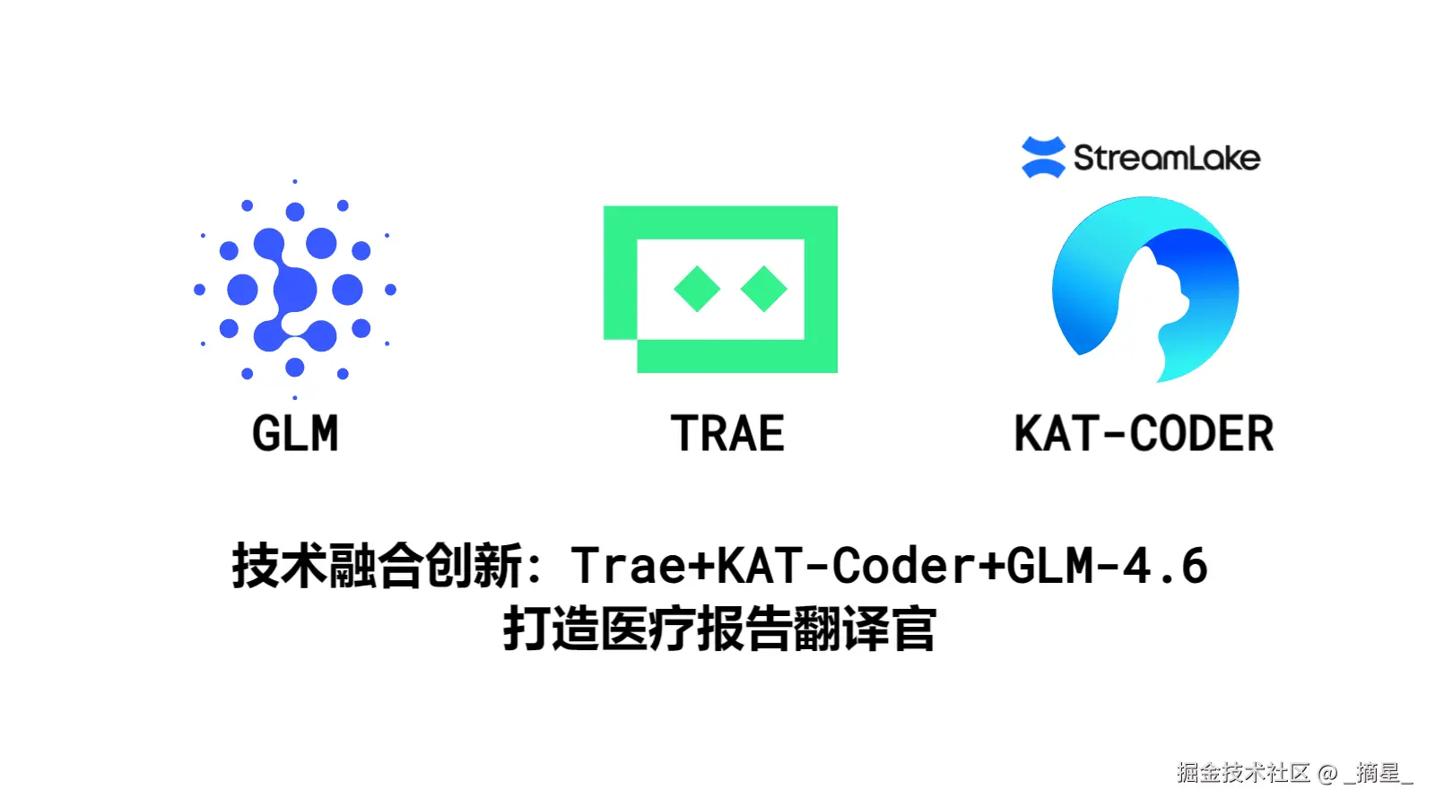 本文系统介绍了"医疗报告翻译官"应用的开发全流程,聚焦于解决中老年人难以理解专业医疗术语的核心痛点。项目基于Trae IDE 作为开发环境,集成KAT-Coder (由快手StreamLake提供)实现高效代码生成与工程化能力,并结合智谱AI 的双模型架构------GLM-4.6 (负责自然语言理解与通俗化翻译)与GLM-4.5V(负责医疗报告图像的OCR识别与结构化提取)------构建端到端的智能翻译系统。应用支持文本输入与图片上传两种交互模式,采用医疗友好型UI设计,强调低饱和蓝绿色调与卡片式布局,注重可用性与情感体验。整个开发过程通过提示词驱动、自动生成、本地测试与迭代优化,体现了AI原生开发范式在垂直领域产品落地中的高效性与可行性。