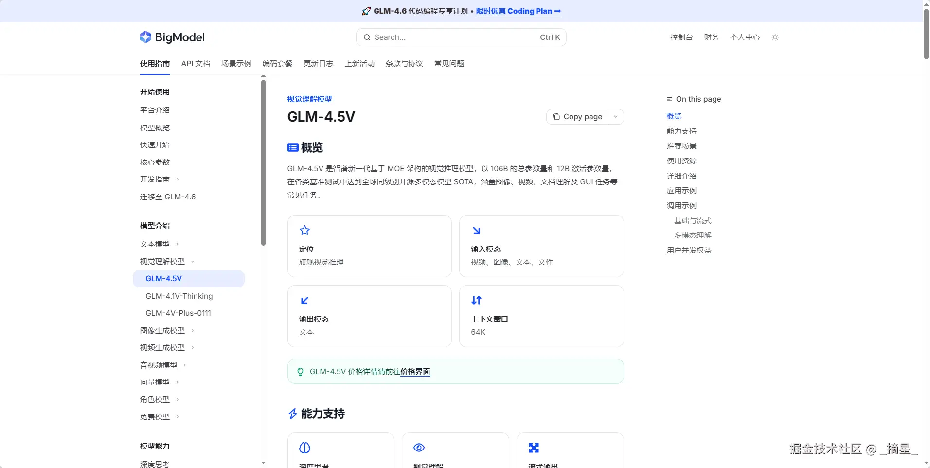 - GLM-4.6 与 GLM-4.5V API 文档 :open.bigmodel.cn/