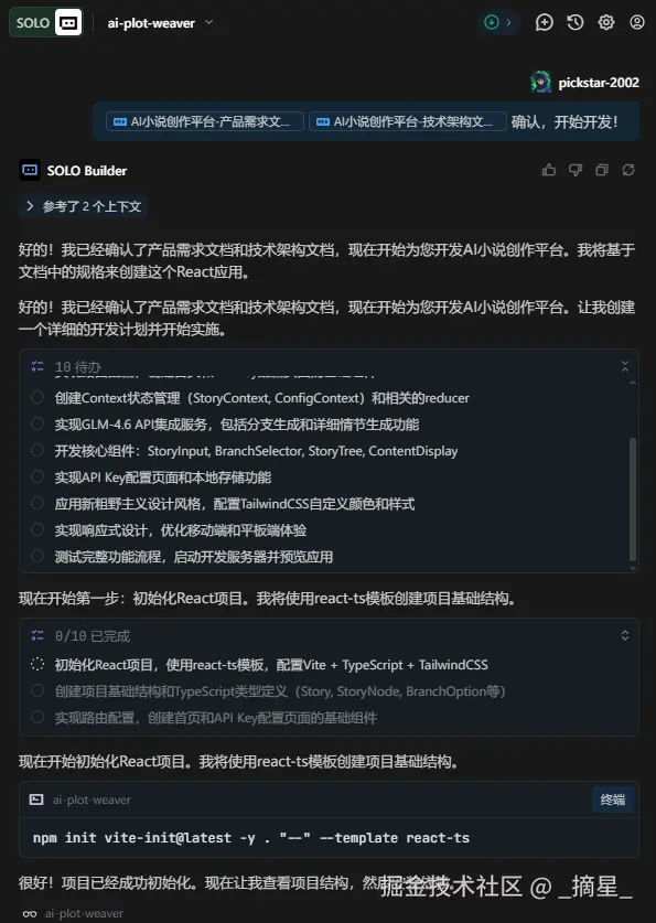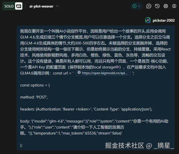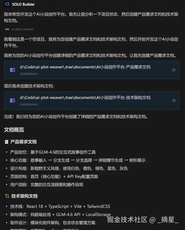 用户选剧情,AI写故事:Trae Solo+GLM-4.6实现沉浸式小说创作体验