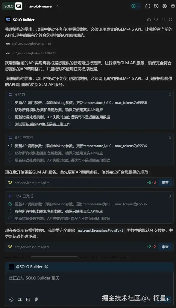但是我在测试的过程中发现,应用在API调用失败的时候会使用模拟数据,这是绝对不允许的,那么输入下方提示词让Solo给我改成回来!