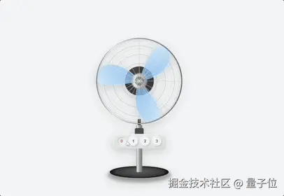而且 SVG 不仅限于静态,还支持交互,比如这个网页版风扇,不仅形状和谐,还支持开关和风速调节。