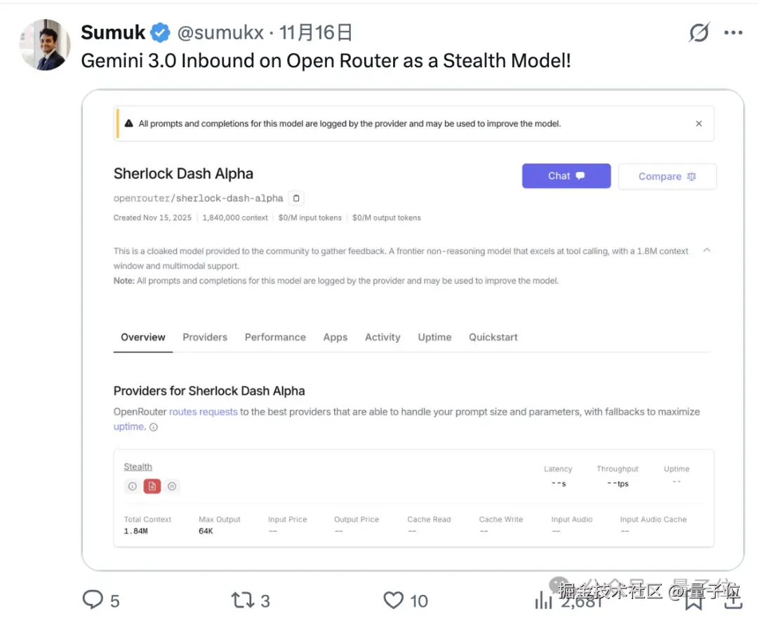 除了官方途径之外,一些第三方平台,例如 OpenRouter 当中,也据传藏有 Gemini 3.0。