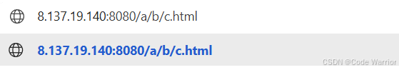 /a/b/c.html就是 URI,明确了要请求的资源路径。 - 浏览器地址栏的完整 URL(如