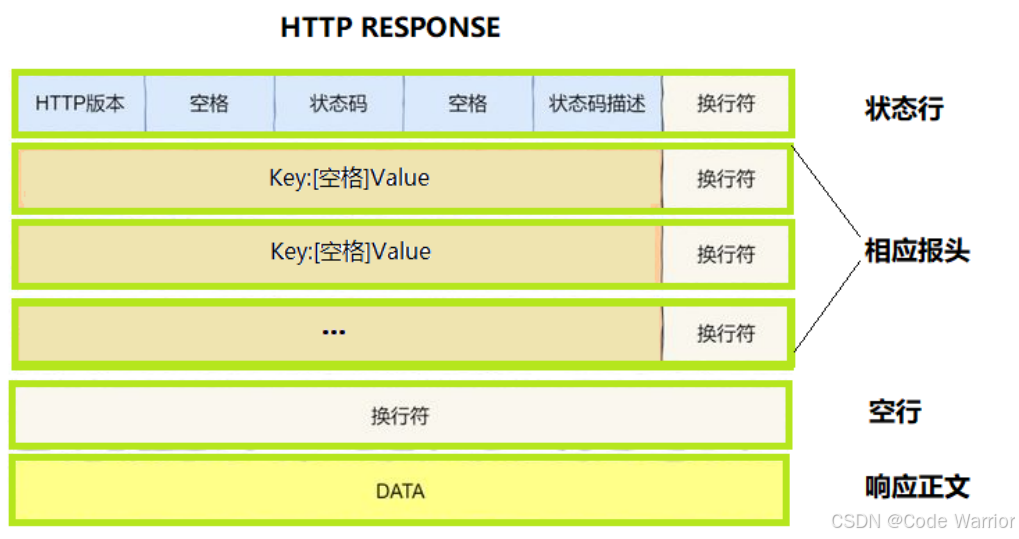 [版本号] + [状态码] + [状态码解释](如HTTP/1.1 200 OK)。 - Header:同请求格式,键值对描述响应属性。
