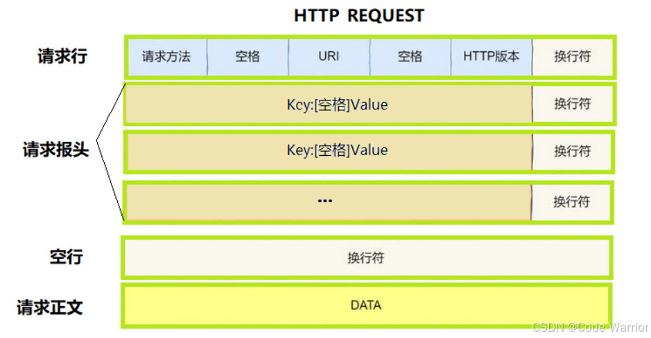[方法] + [url] + [版本](如GET /index.html HTTP/1.1)。 - Header :键值对(冒号分隔),每组用