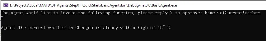 Console.WriteLine(await agent.RunAsync("Tell me the weather like in Chengdu?"));