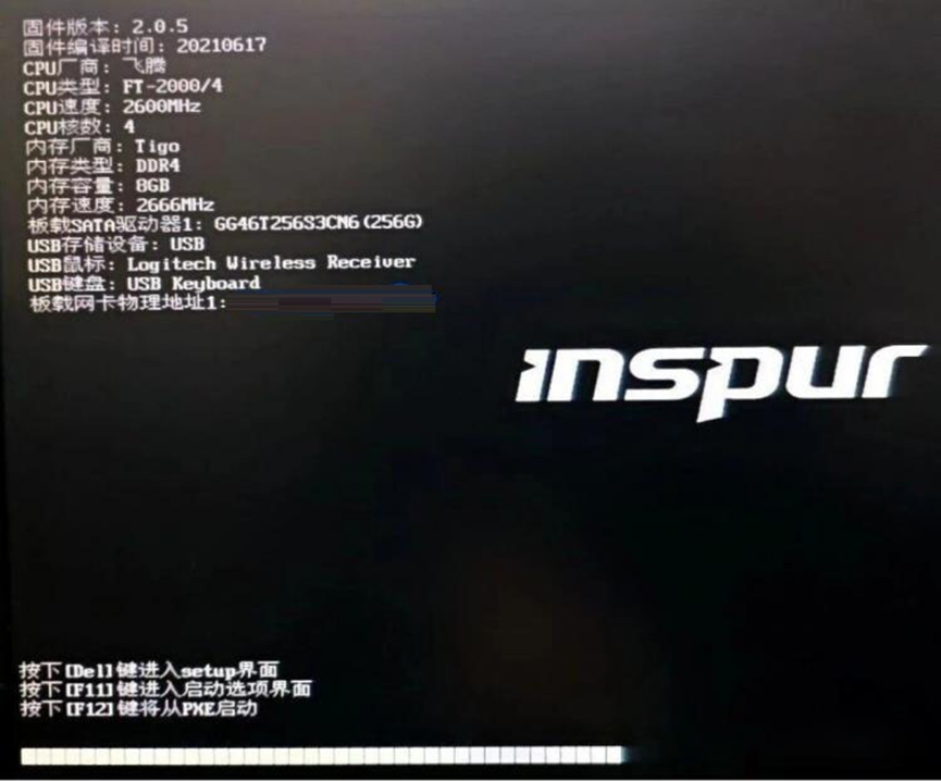 将制作好的U盘/光盘插入国产主机,重新启动电脑,根据主板提示按相应按键进入启动选项界面(浪潮主机启动项为F11);