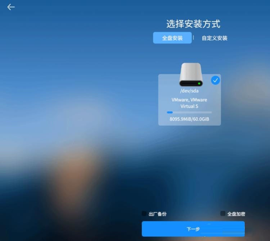 无需保留原个人文件直接选择全盘安装,自动分区;
