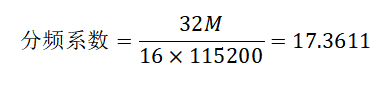 系统时钟频率为FCLK=32M,目标波特率为115200bps,4倍频采样,则分频系数应为