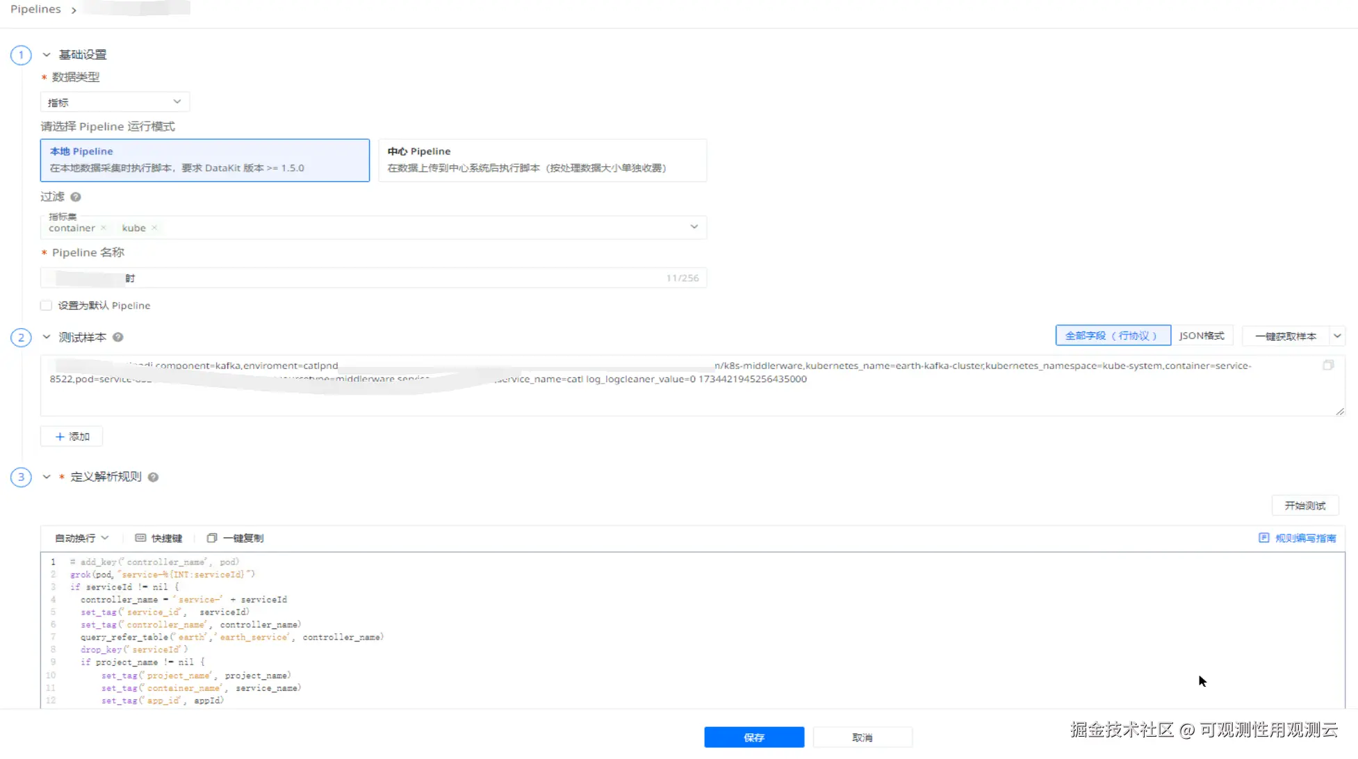 配置 Pipeline 名称以及合适的过滤条件(由于本案例是用单独的 DataKit 采集 prom 指标,故无过滤条件)。