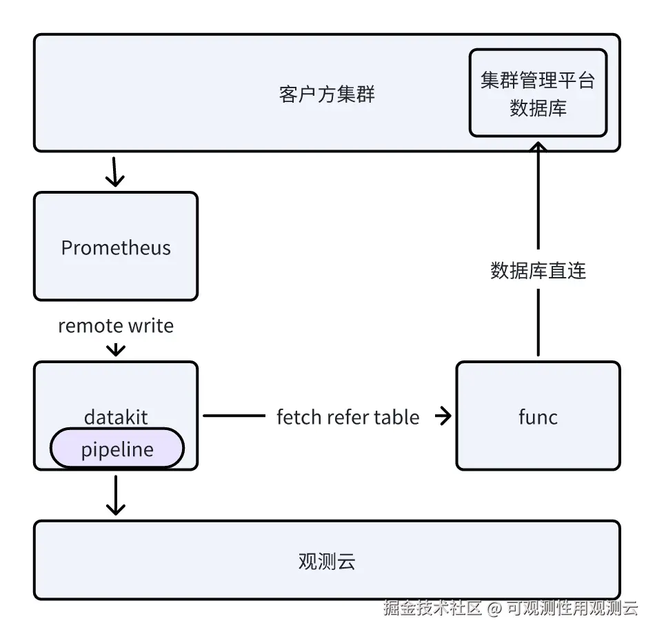 为了增加不同数据类型的关联性,需要对已有的指标数据添加更多业务 TAG,如应用名,所属项目,部门等。为实现此类需求,需要能够获得原始的相关配置信息,如 CMDB 数据等。然后通过观测云 Pipeline 中的 refere_table() 方法实现关联数据并添加 TAG。