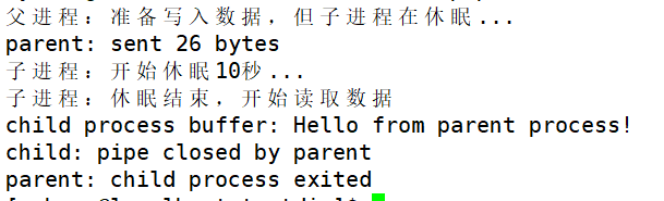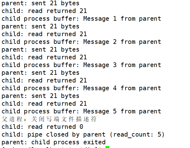 ret = read(fds[0], buffer, SIZE - 1); // 留一个位置给字符串结束符